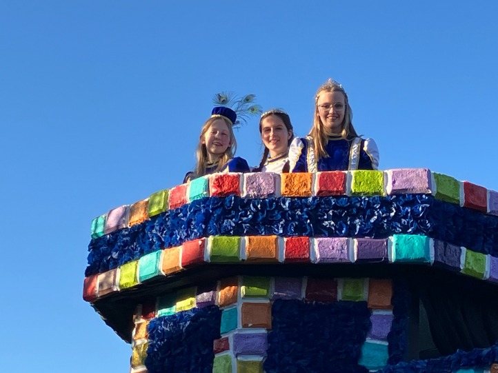 Das Mädchendreigestirn Prinzessin Fiona I. (Saftig), Bäuerin Annika I. (Becker), Jungfrau Milla I. (Mertens) genossen den Ausblick...