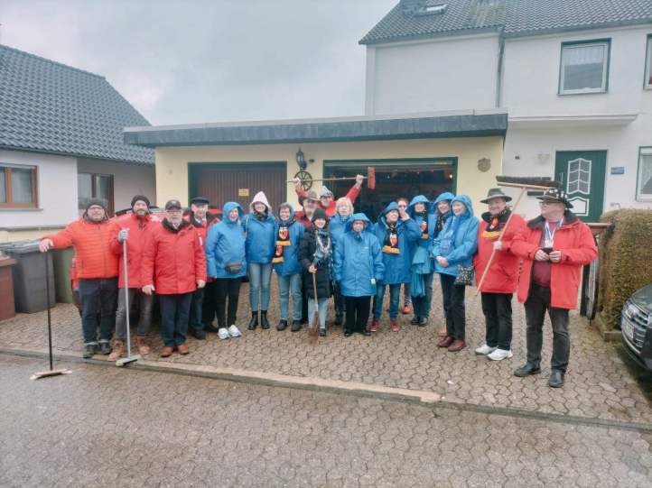 Das traditionelle Straßekehren des „Alten Elferats“ fand bei nasskaltem und diesigem Wetter trotzdem statt...