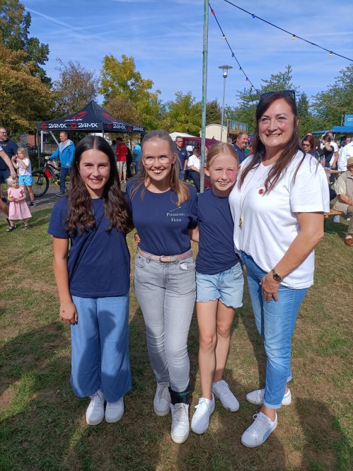 Beim Familiennachmittag der Kirmes wurde das Mädchendreigestirn und die Prinzessin der Session 2024/2025 von Roswitha Born vorgestellt.