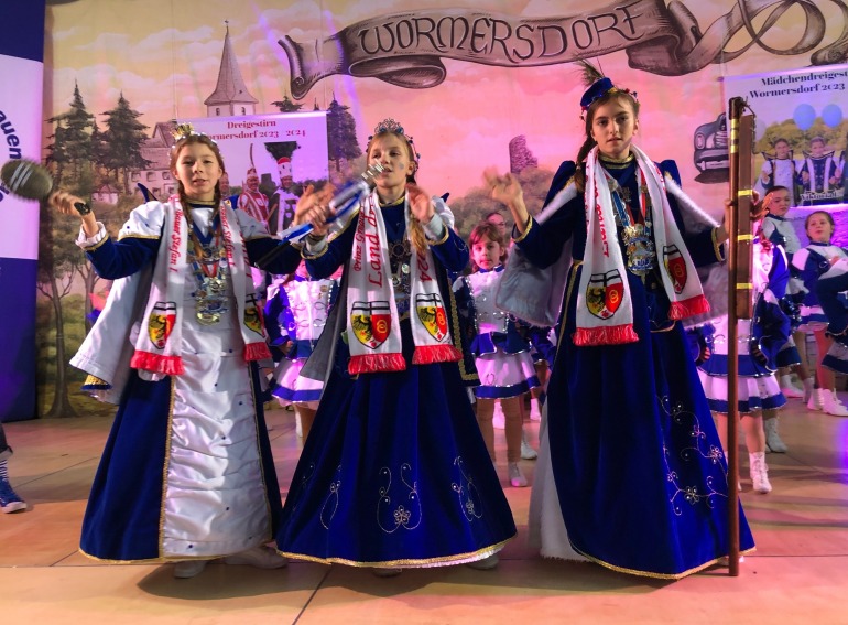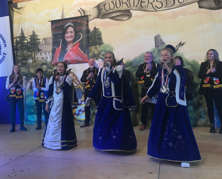 Beim Familiennachmittag der Kirmes wurde das Mädchendreigestirn und die Prinzessin der Session 2024/2025 von Roswitha Born vorgestellt.